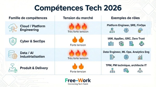 Trois moteurs qui tirent l’emploi Tech en 2026
