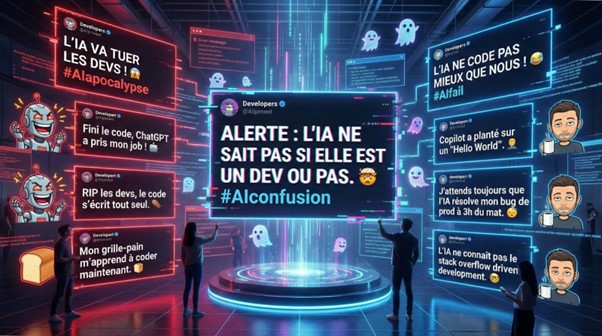 Et puis il y a le phénomène médiatique, toujours le même. Une phrase « super-codeur en 2031/2032 » se transforme en titre « fin des devs », puis en débat binaire.