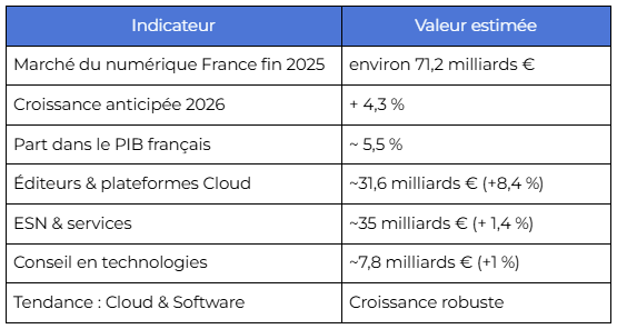 Le marché informatique français entame une phase charnière : croissance plus mesurée, arbitrages budgétaires chez les clients, mais persistance de dynamiques fortes sur les technologies structurantes (cloud, sécurité, IA). Ce bilan actualisé puise dans les derniers baromètres sectoriels, analyses de marché et prévisions 2026, offrant un état des forces et des tensions au sein de l’écosystème numérique hexagonal.