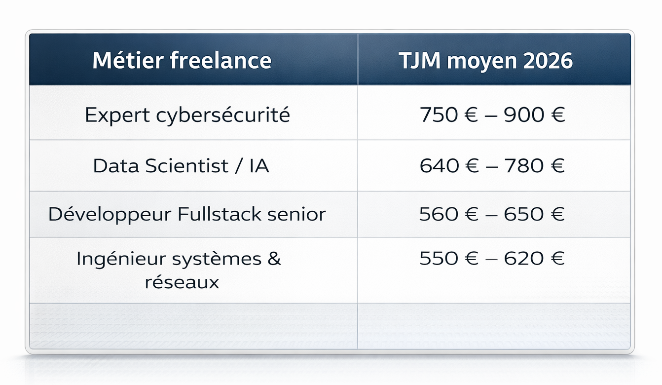 Les TJM observés en 2026 confirment cette montée en gamme :