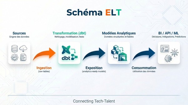 En effet, ce profil occupe un territoire longtemps ignoré : l’ingénierie appliquée à l’analytique. Il reprend les bonnes pratiques du dev (test, CI/CD, versioning, review, documentation) et les applique à la modélisation SQL dans l’entrepôt de données.